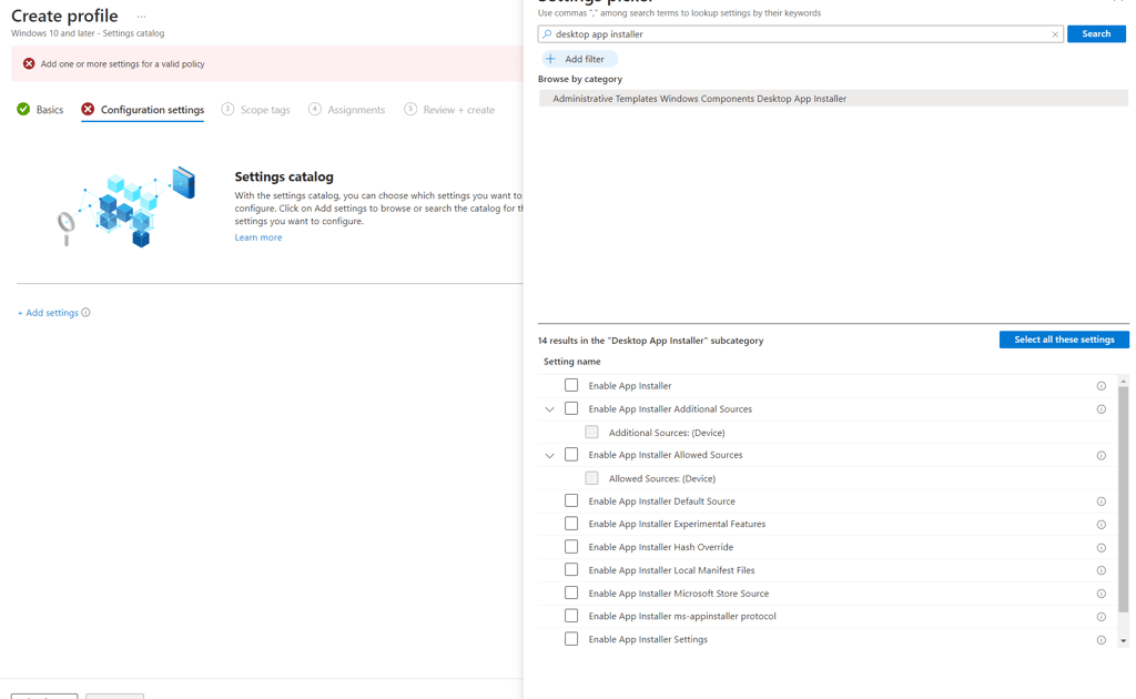 Select Settings Catalog